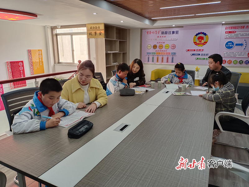 西街社区联合县烟草专卖局为留守儿童辅导课后作业。