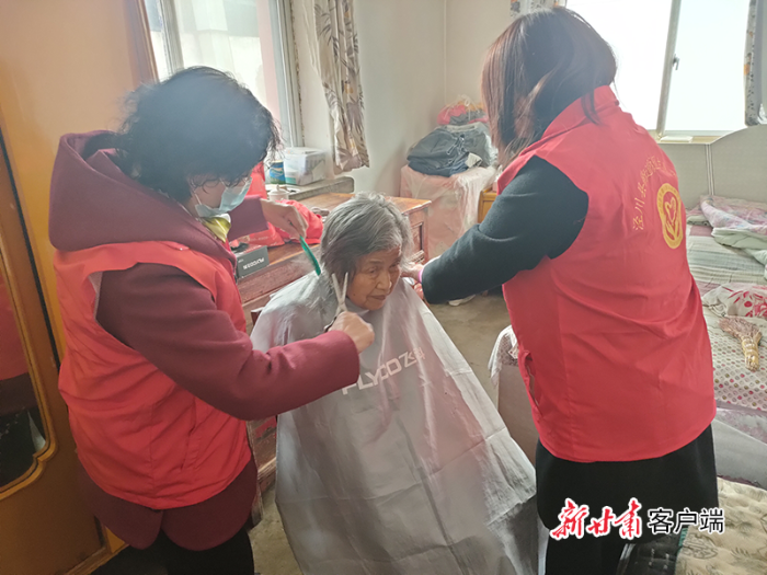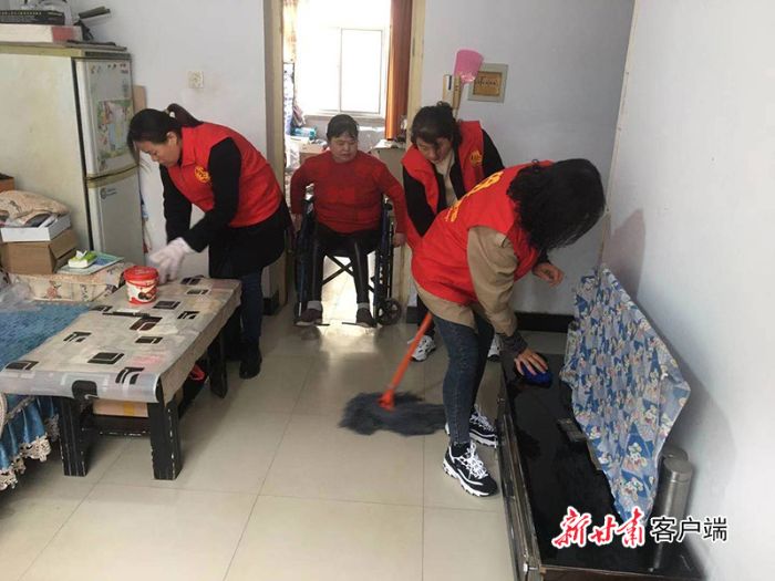 社区志愿者深入残疾人家中开展心理疏导、卫生清洁活动。
