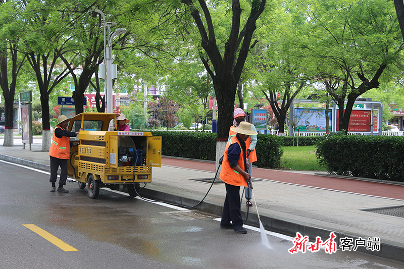 环卫工人清洗马路。 新甘肃·甘肃日报通讯员 王红刚 摄
