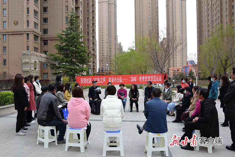 崆峒区东郊社区新时代文明实践站在居民小区开展党的二十大精神“板凳课堂”学习会。