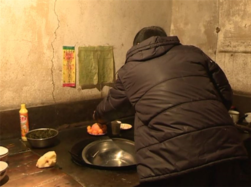 柳梁镇李山村村民李银凤说,“农村里二十三就是吃搅团、送灶爷,就是说要粘灶爷的嘴呢,把白面、玉米面放到一起搅,搅到稠稠的,能提起来,就舀到碗里,特别好吃。洋芋丝丝和着地软,再就是醋、蒜、辣子调到一块蘸着吃,洋芋丝丝还能把搅团放到里面吃。”