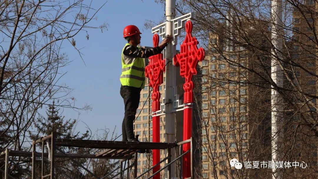 随着春节的临近,临夏市街头的年味越来越浓。连日来,临夏市城管局组织人员陆续在南北滨河路主干道路灯杆上悬挂起中国结·中国梦灯饰。走在临夏街头,浓浓的春节气息扑面而来,红色成了当下最亮眼的一抹底色。