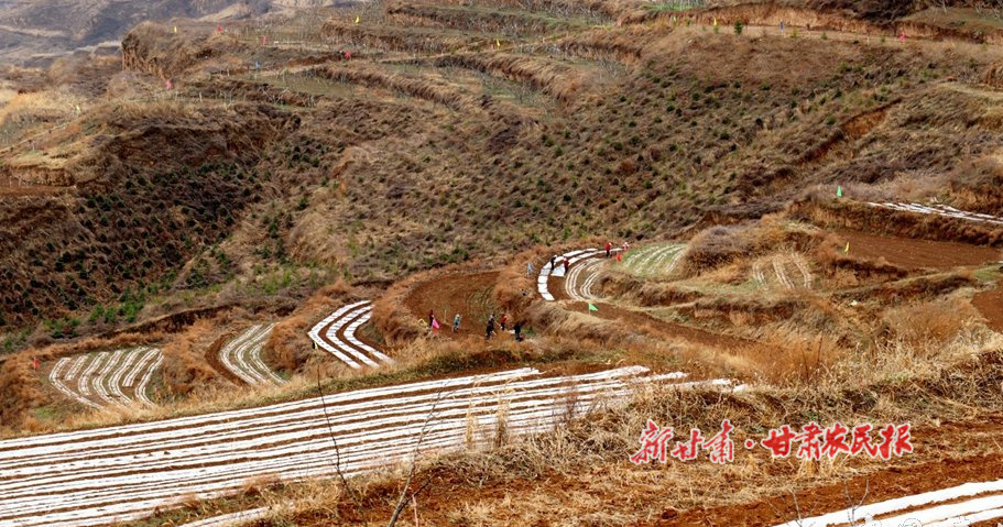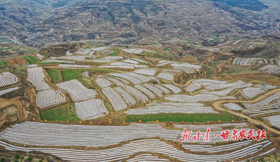 春耕时节,站在秦安县兴丰镇阳刘湾山头一眼望去,随处可见正在工作的机器和村民们忙碌的身影,他们正在为即将开始的玉米大豆带状复合种植进行旋耕、覆膜等前期准备工作。与远处还未开垦的荒地相比,一垄垄覆好的地膜在阳光的照射下闪着银光,形成了一道独特的春日乡村风景线。