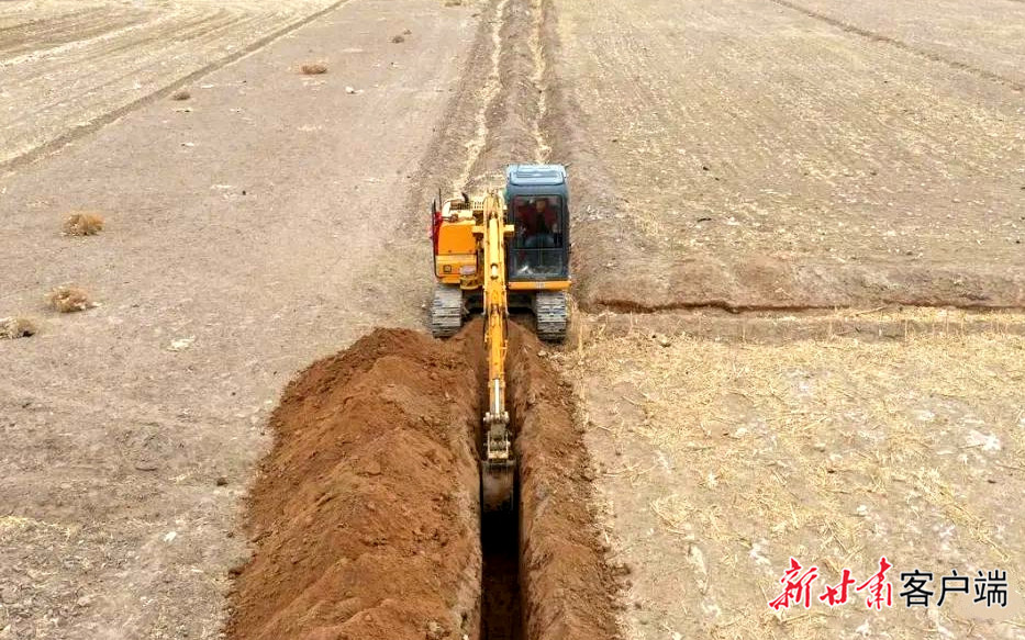 近日,在民勤县夹河镇国栋村田间地头,大型机械开挖沟渠,工人安装管道,技术人员现场指导,一派繁忙的景象。