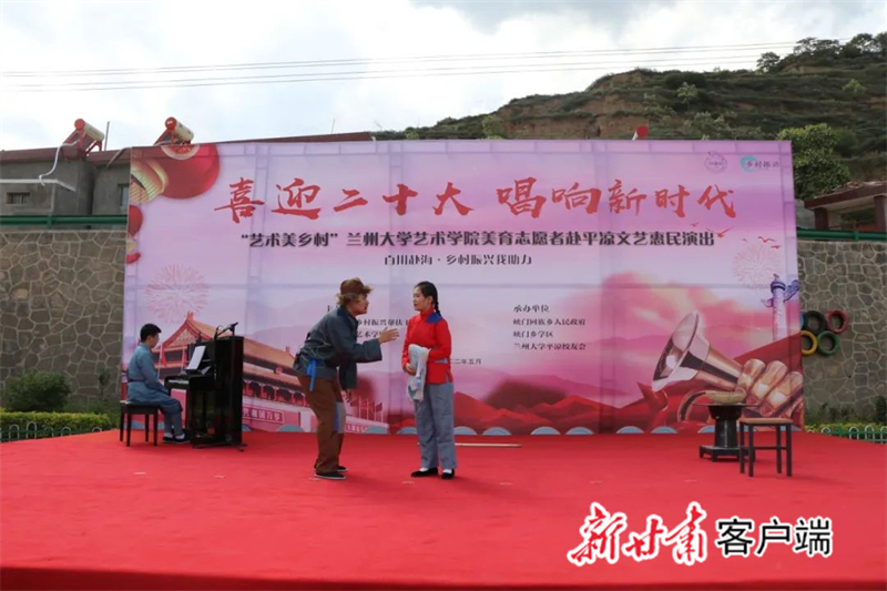 新甘肃客户端兰州讯(新甘肃·甘肃日报记者 苏家英 通讯员 魏韵茗)为进一步助力我省乡村文化建设,焕发乡村文明新气象,丰富群众精神文化生活,并以美育人、以文化人,提升学校艺术学子综合素质,5月19日,兰州大学艺术学院美育志愿者团队在平凉市举办“喜迎二十大·唱响新时代——百川赴海·乡村振兴我助力”文艺惠民演出活动。
