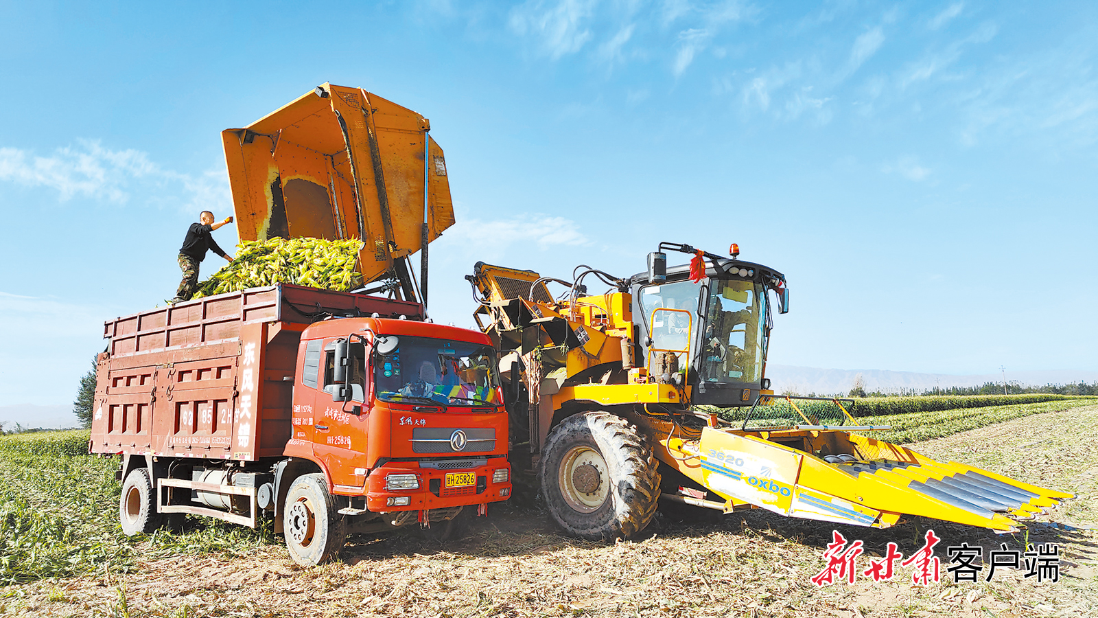 武威市黄羊河农场机械化收获甜糯玉米。新甘肃·甘肃日报记者 王朝霞