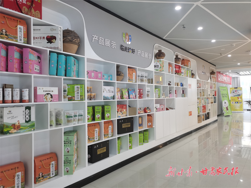 “临洮珍好”电子商务中心的农产品展馆一角。