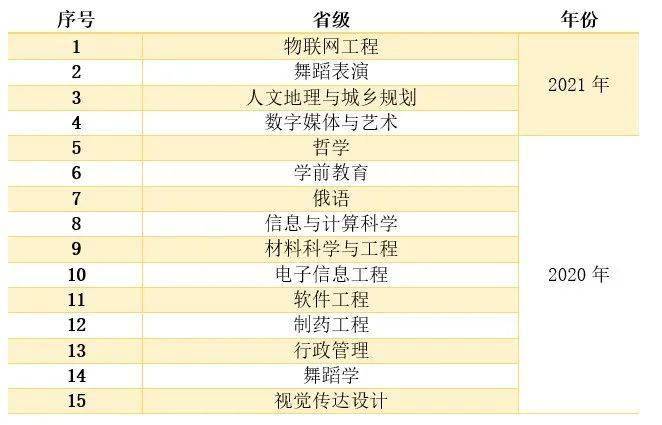 该校2021年新增英语、财务管理、视觉传达设计、无机非金属材料工程4个省级一流专业建设点。截至目前,该校有国家级一流专业建设点20个,省级一流专业建设点14个。