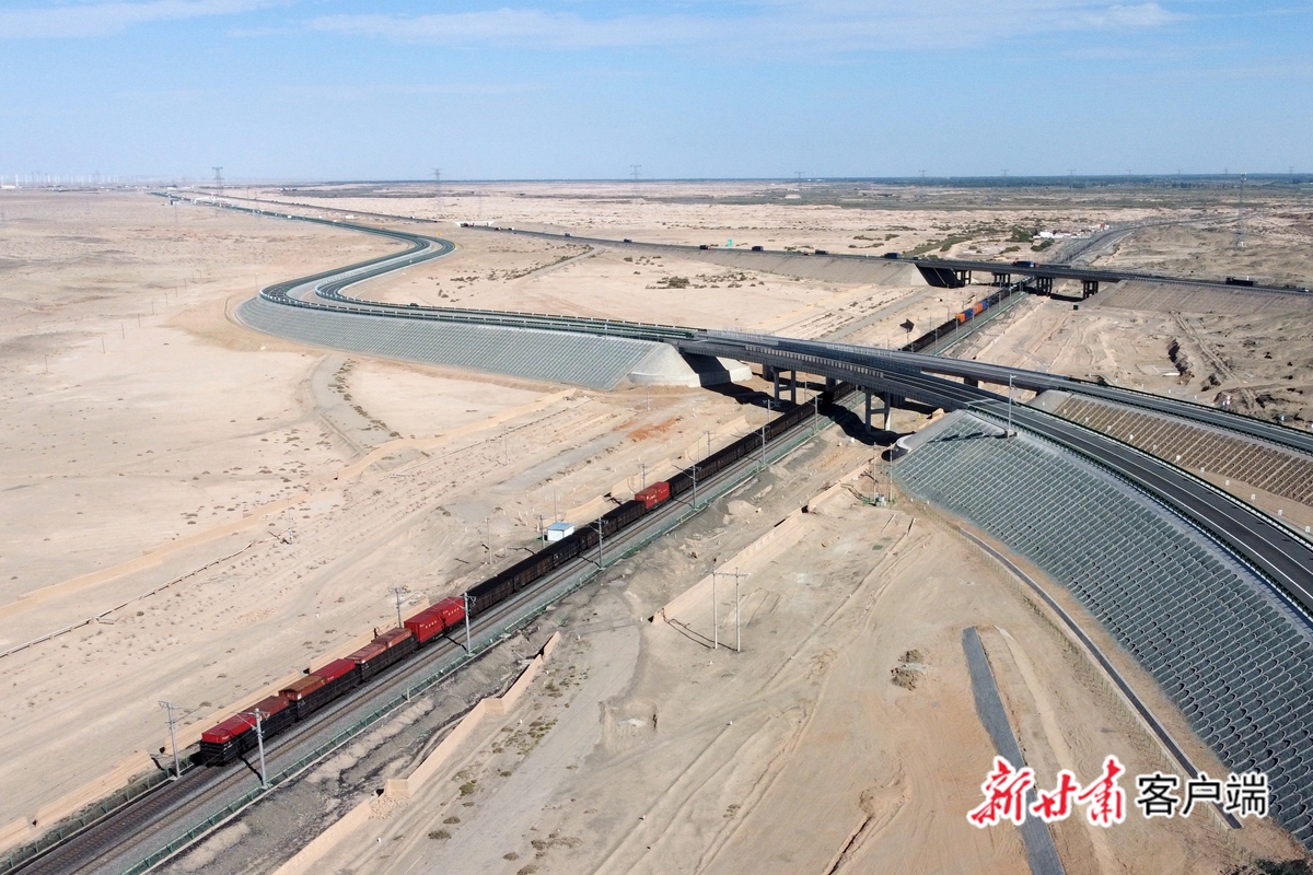 G312线七墩至瓜州一级公路上跨铁路。新甘肃·甘肃日报记者 刘健 摄