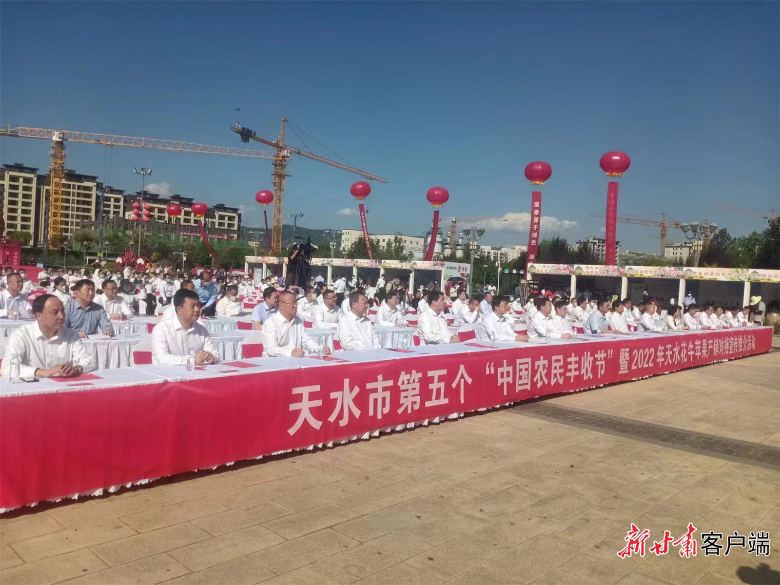 新甘肃客户端麦积讯(新甘肃·甘肃日报记者 白永萍)金秋送爽,硕果迎宾。9月6日下午,由天水市委、市政府主办,天水市麦积区委、区政府和天水市农业农村局承办的2022年“中国农民丰收节”暨天水花牛苹果产销对接宣传推介活动在天水市麦积区开幕。活动现场,50余家外地客商现场签约订货,总签约金额达8亿元。当日直播也创下了1003.2万人次同时观看的盛况,“云推荐”让天水花牛苹果搭上了电商“快车”。
