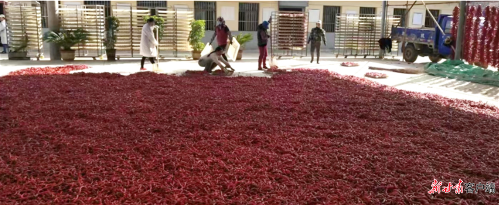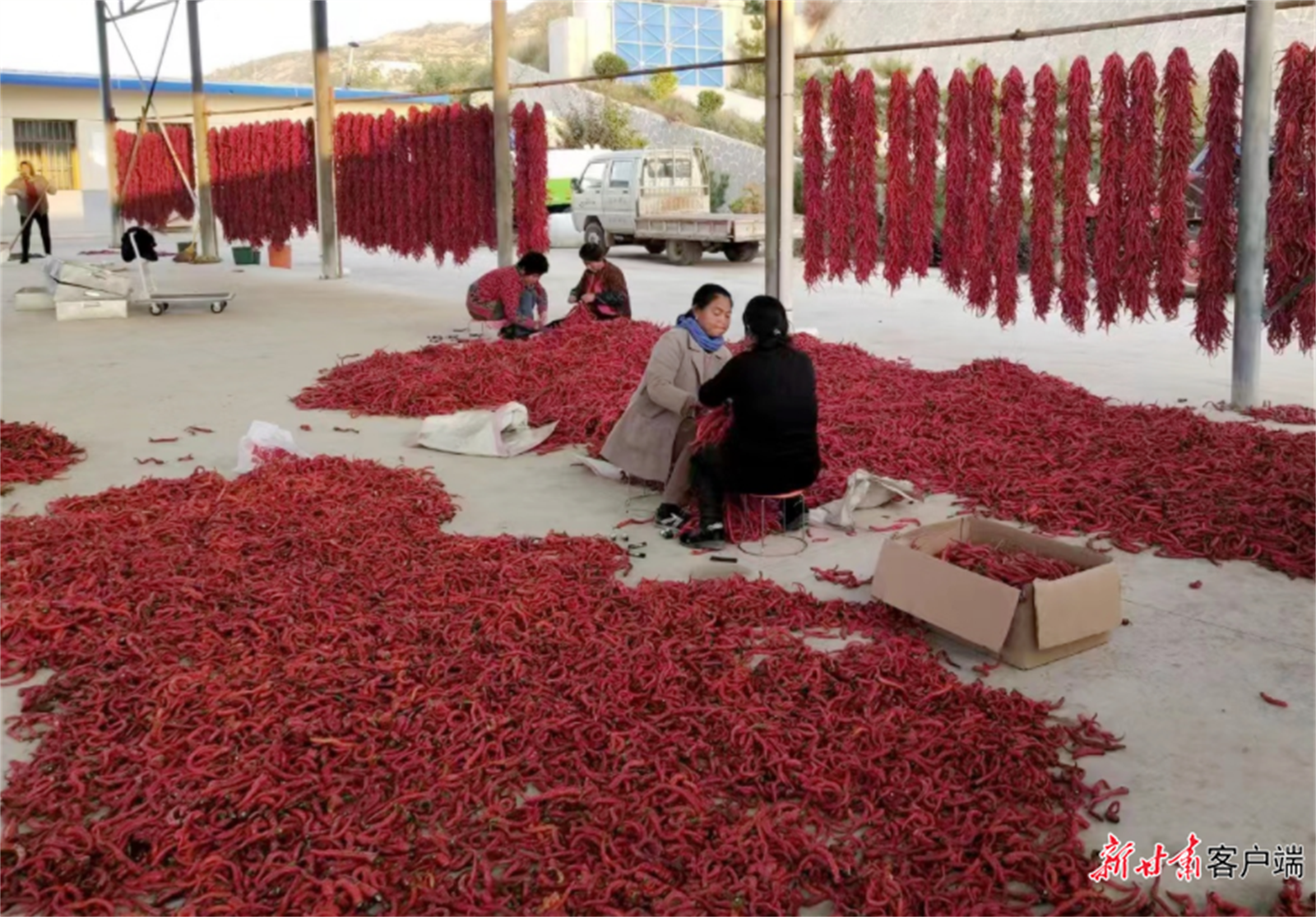 初秋,乘着和煦的阳光,天水市甘谷县新兴镇康家滩村辣椒晾晒场上,红彤彤一片,煞是喜人。工人们忙着筛选、晾晒,空气中弥漫着辣椒的香辣味。