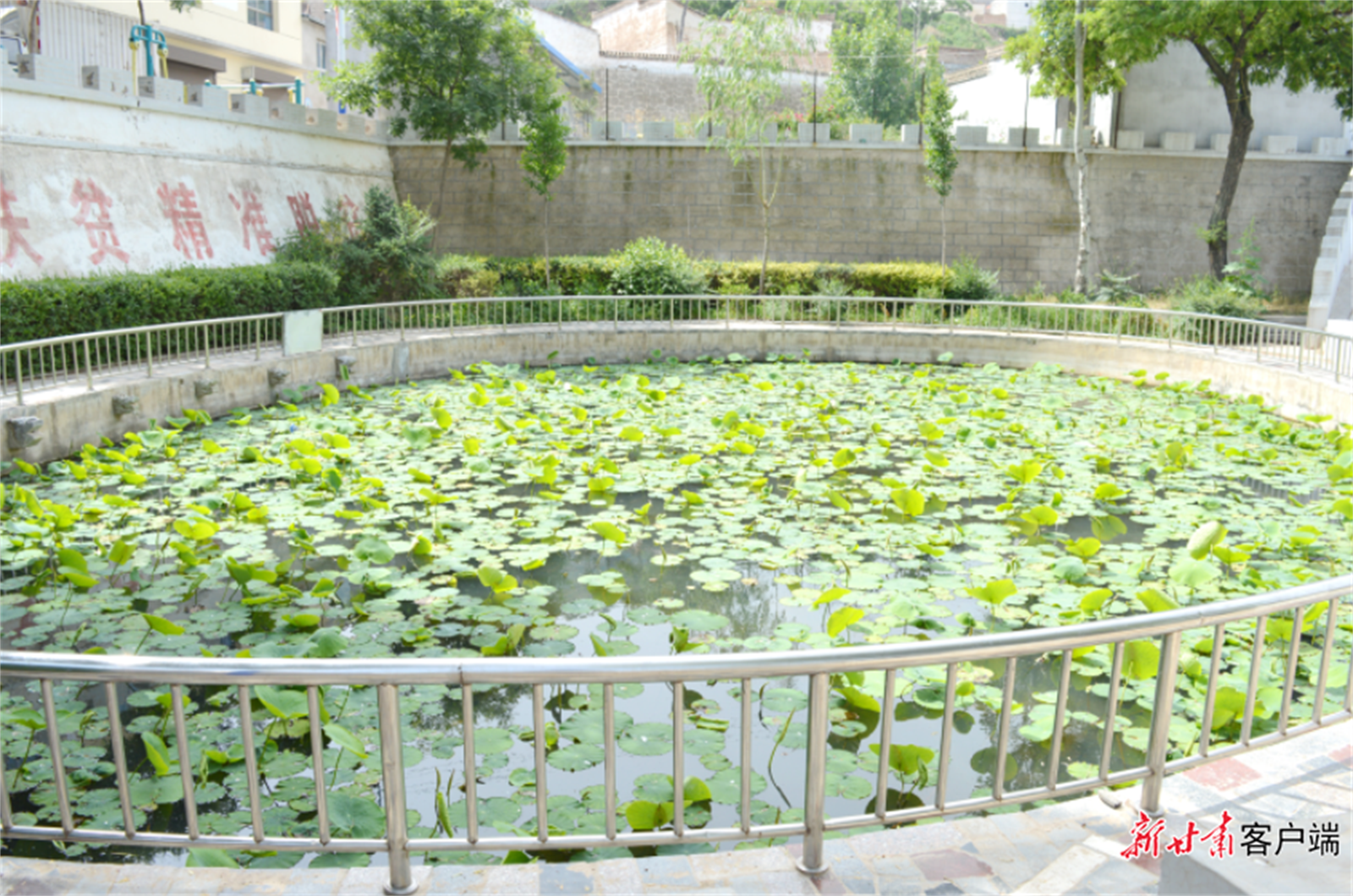 “今年的莲花长得好,入秋了叶子都这么旺盛。”送孙子入园后,几位老人在村子的小游园里游逛、闲聊,望着随风摇曳的莲叶,笑容满溢。