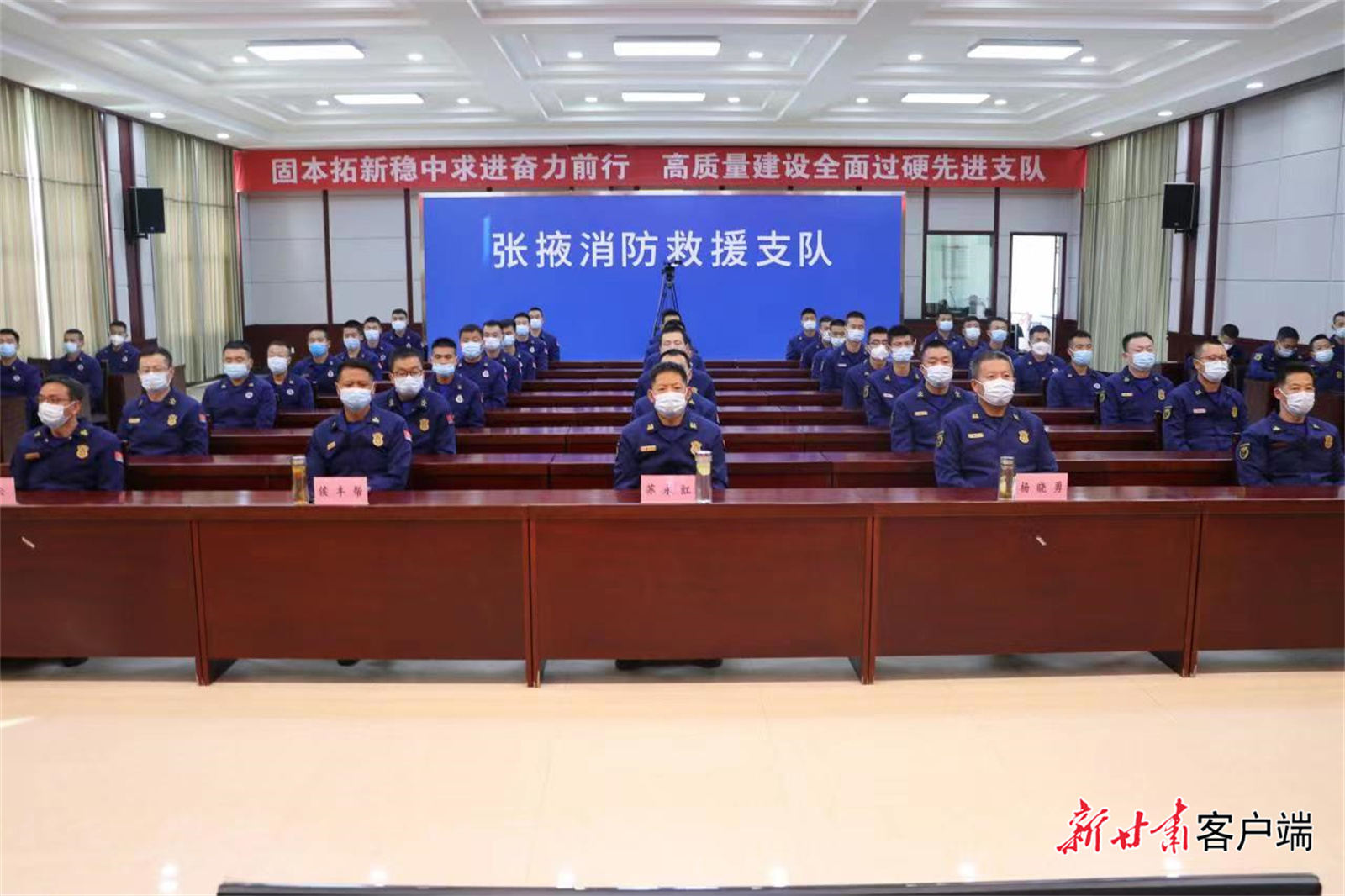 张掖市消防救援支队组织消防救援人员收听收看党的二十大开幕会盛况。