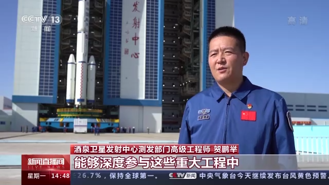 酒泉卫星发射中心测发部门高级工程师 贺鹏举:我们作为新时代航天人,能够深度参与这些重大工程,倍感自豪、备受鼓舞。这更加激发了我们自信自强、继续奋斗的热情,后续我们将严控技术状态,严抓过程质量,严守重大节点,为建设航天强国贡献力量。