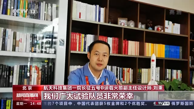 航天科技集团一院长征五号B运载火箭副主任设计师 刘秉:我们广大试验队员非常荣幸能够在这10年中间为科技强国贡献自己的一份力量。未来,中华民族迈向第二个百年的历史征程中,在国家实现现代化的征程中,我们继续贡献自己的力量,实现中国航天更大跨越。