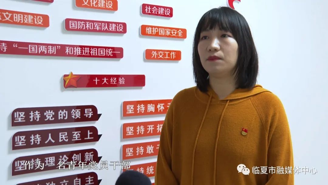 临夏市妇女联合会干部 司璠:作为一名妇联干部,我将更加坚定的追寻党的伟大足迹,听党话、跟党走,将党的声音传播到所有妇女姐妹身边,凝聚妇女力量,用担当作为践行妇联人的初心使命,为建功新时代贡献巾帼力量!
