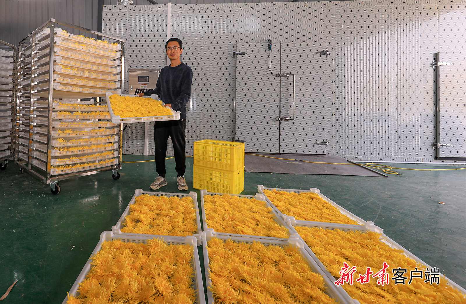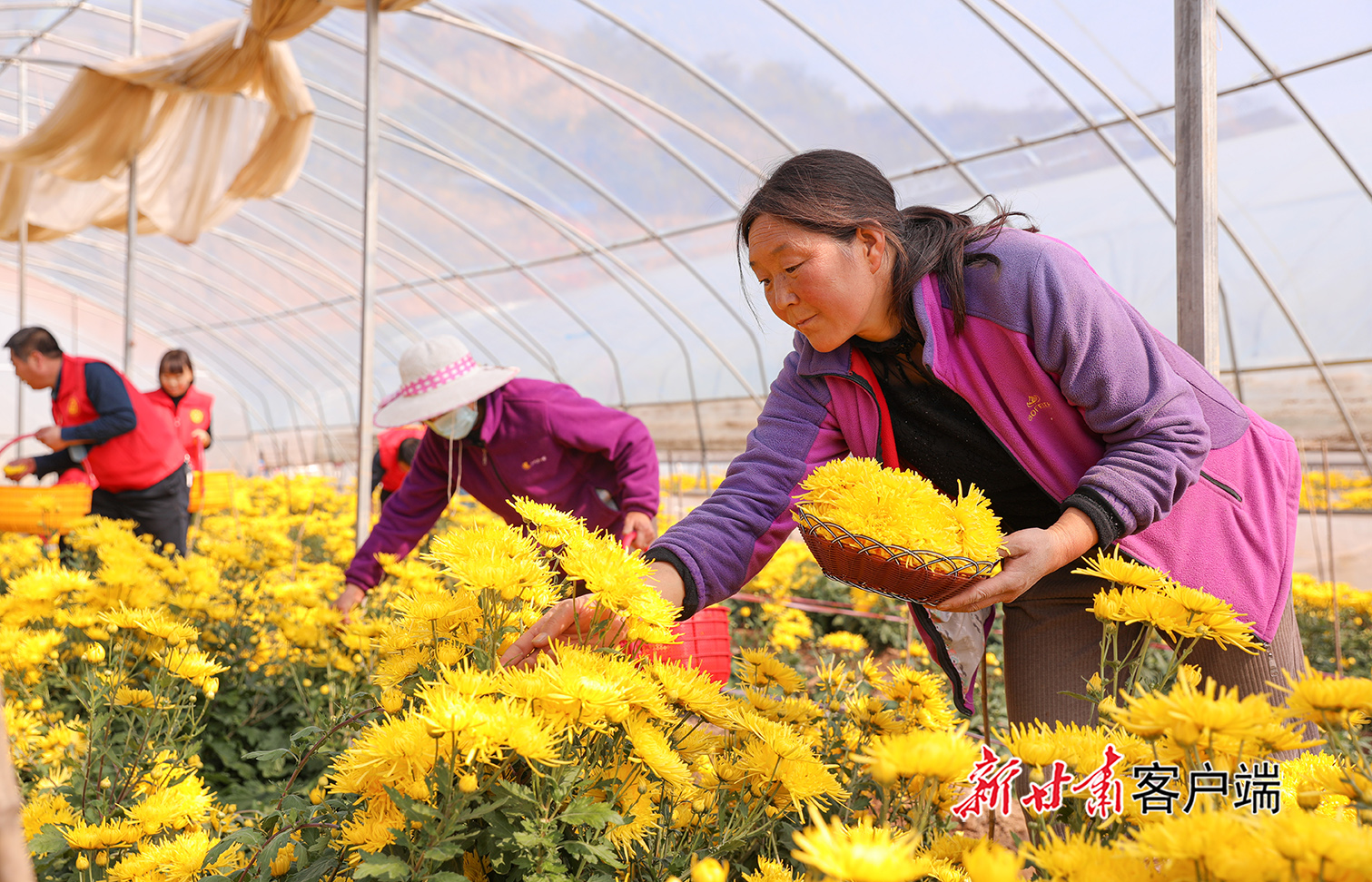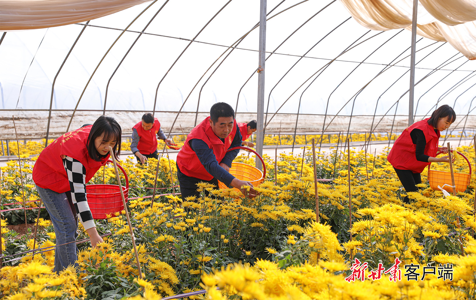 10月22日,在秦安县五营镇张塬村的金丝皇菊种植基地里村民正在采摘金丝菊。金灿灿的金丝菊竞相绽放,清香扑鼻,沁人心脾。鲜花产业不仅成为一道靓丽的风景,也为当地农民带来可观收入。