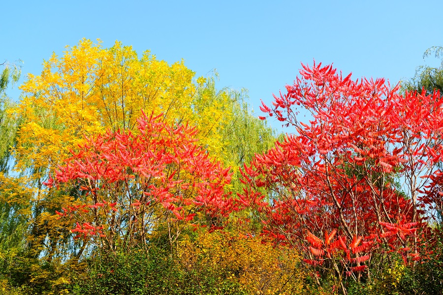 随便铺开画纸,蘸取一点点秋色,蓝天、红墙、金叶……都是最美的色调。