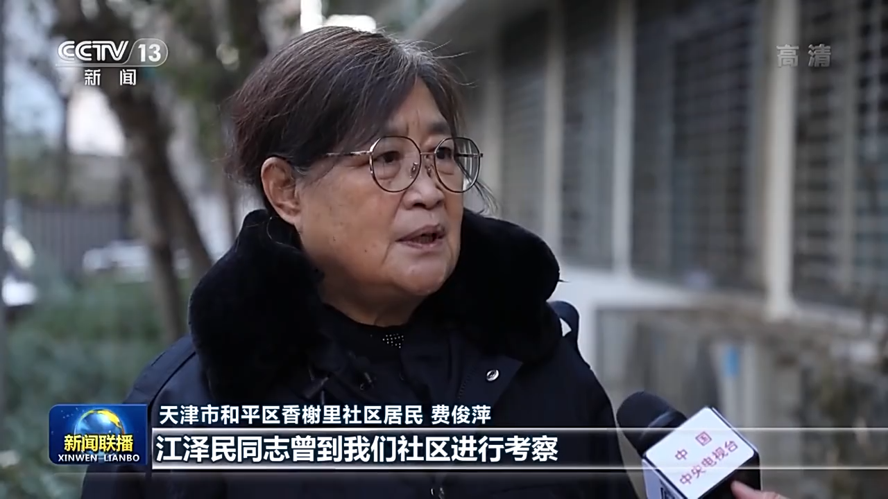 天津市和平区香榭里社区居民 费俊萍:江泽民同志曾到我们社区进行考察,询问着我们生活里的困难。看到我们从危陋平房,住进了新小区,他替我们高兴,他始终关心着我们老百姓的生活。
