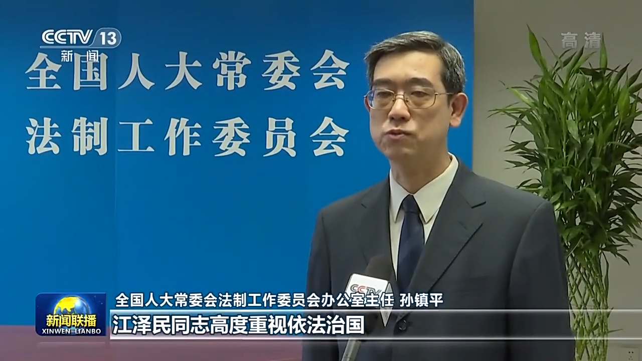 全国人大常委会法制工作委员会办公室主任 孙镇平:江泽民同志高度重视依法治国,开创了依法治国、建设社会主义法治国家的新局面。下一步我们要按照党的二十大的部署,立良法,促进发展,保障善治。