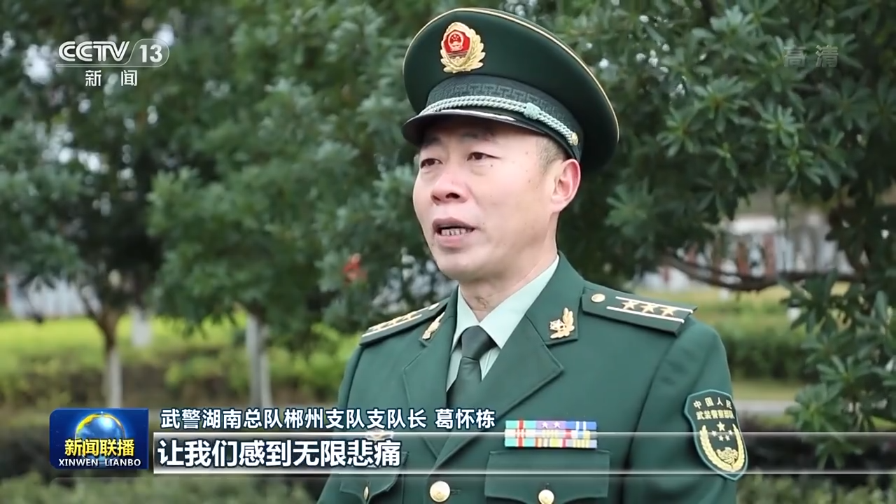 武警湖南总队郴州支队支队长 葛怀栋:江泽民同志的逝世,让我们感到无限悲痛。作为后继者的我们,更应化悲痛为力量,我们一定更加自觉地团结在以习近平同志为核心的党中央周围,全面加强练兵备战,为建设巩固国防和强大军队作出应有贡献。