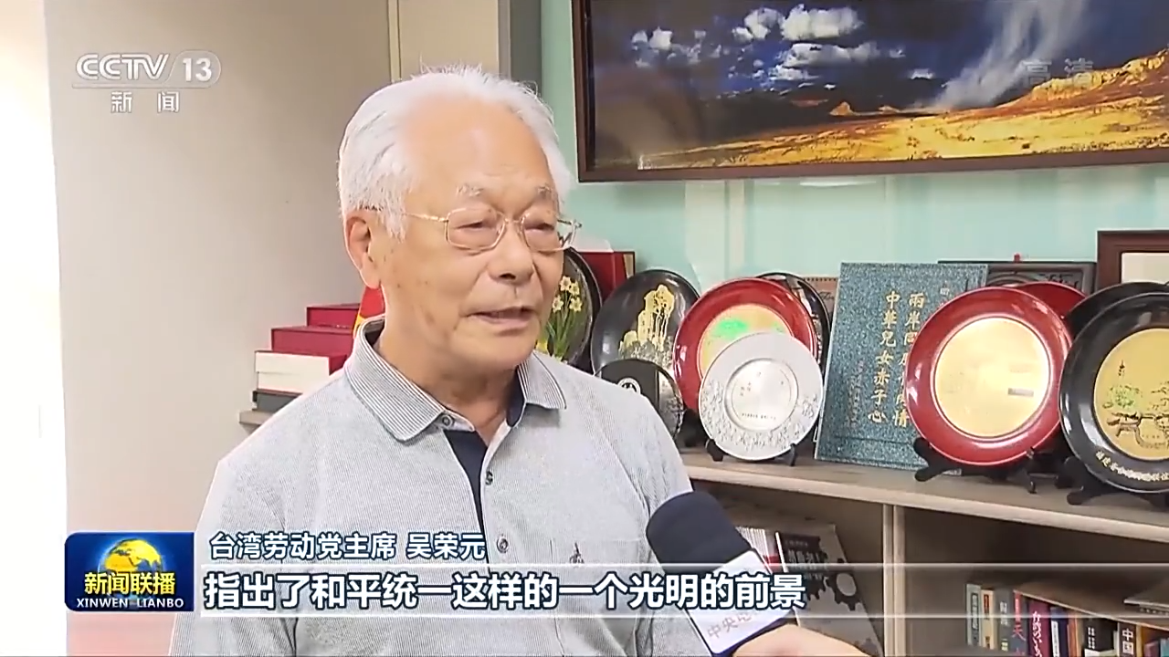 台湾劳动党主席 吴荣元:江泽民主席推出了很多重要的政策,指出了和平统一这样的一个光明的前景,那么我们可以这么讲,中华民族伟大复兴,完成国家统一,这是一个历史必然,也是必要的。