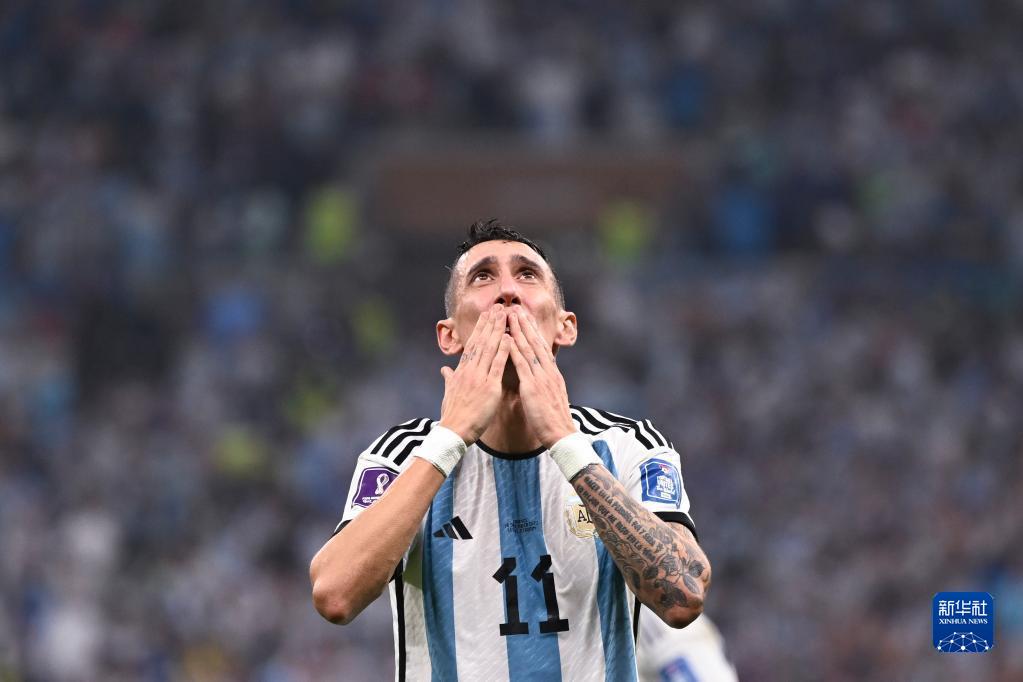 12月18日,阿根廷队球员迪玛利亚在比赛中进球后庆祝。新华社记者 李尕 摄