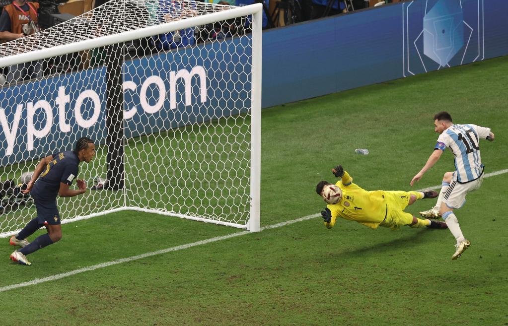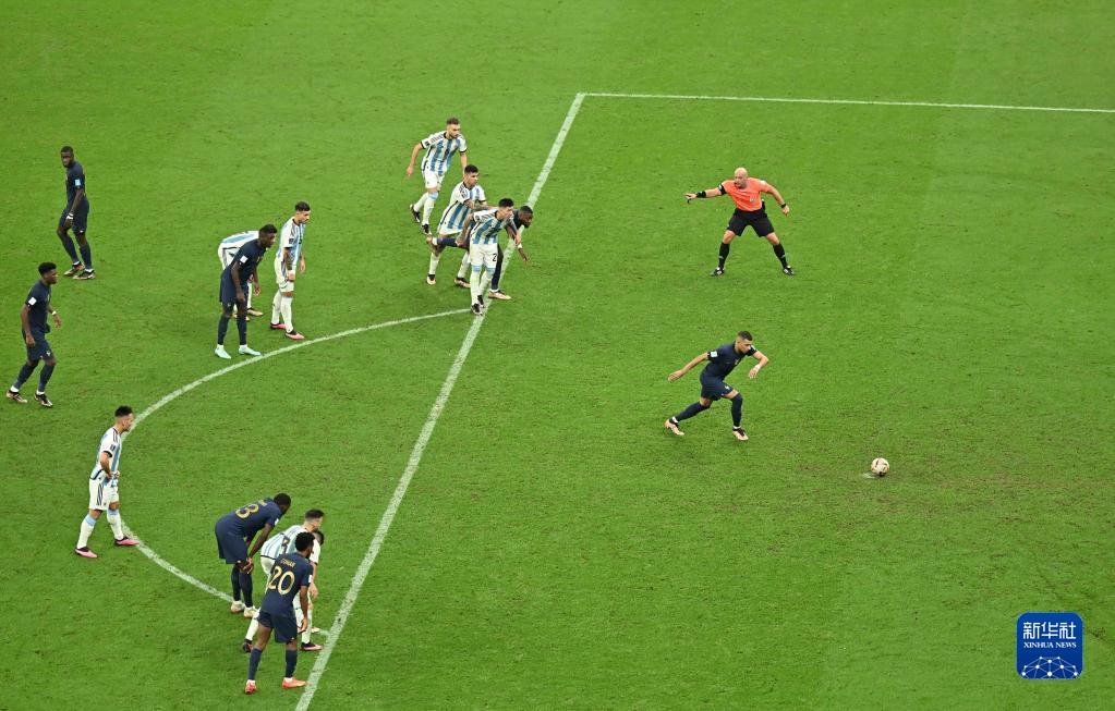 加时赛阿根廷队再度领先,第108分钟,劳塔罗禁区右侧射门被门将扑出,梅西补射破门。第116分钟,姆巴佩远射,阿根廷队蒙铁尔堵截时手球犯规,法国队再获点球,姆巴佩命中。