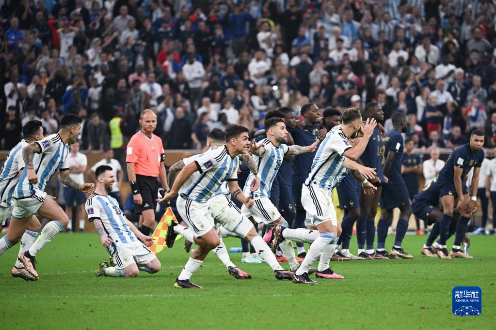 新华社多哈12月18日电(记者王浩宇、岳东兴、肖世尧)“潘帕斯雄鹰”满载荣誉展翅翱翔!阿根廷队在18日的卡塔尔世界杯决赛中经历一场跌宕起伏的激战,最终在点球大战中4:2(90分钟2:2,120分钟3:3)击败法国队,队史第三次捧起大力神杯。