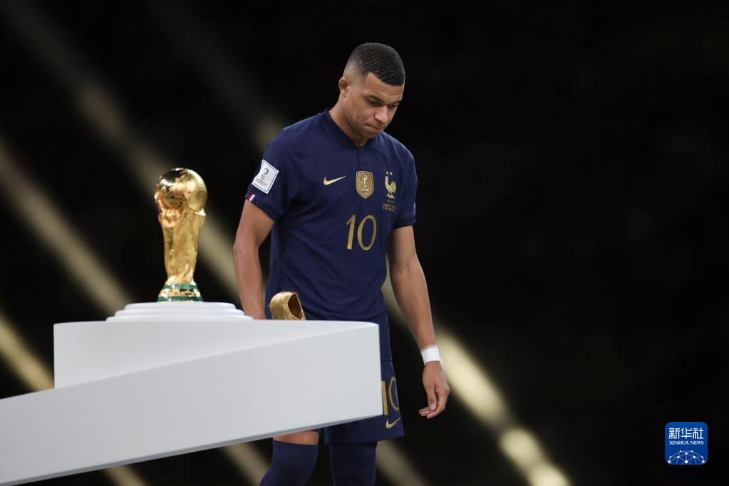 12月18日,获得世界杯金靴奖的法国队球员姆巴佩在颁奖仪式上。新华社记者 曹灿 摄