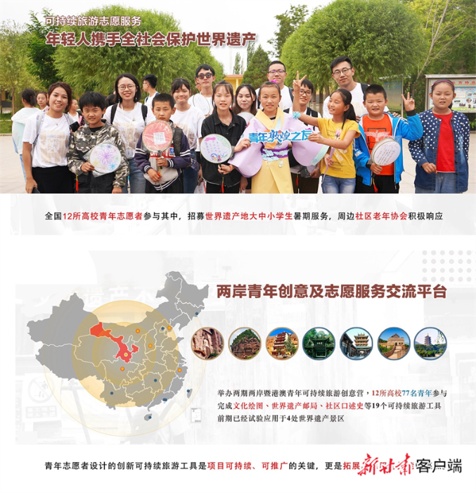 该项目启动至今,已先后组织和支持包括兰州大学在内的12所高校志愿者参与其中,累计服务游客近300万人次,6个世界遗产景区和11所中小学校、周边社区从中受益,形成融景区服务、社区影响、青少年教育、深度研学于一体的世界遗产可持续旅游志愿服务模式。