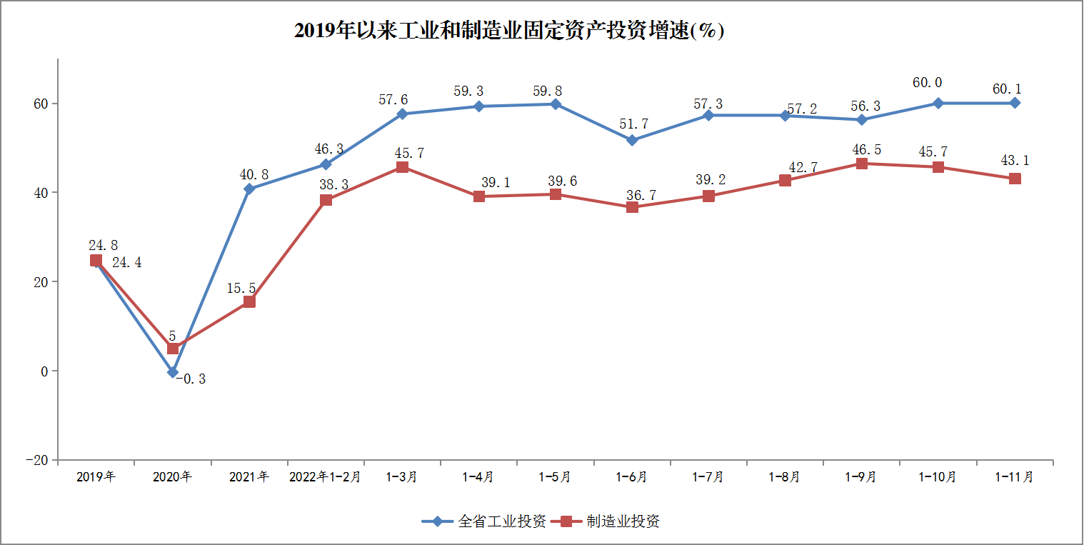 新甘肃客户端讯(新甘肃·每日甘肃网 王宇晨)记者从甘肃省工业和信息化厅获悉,1—11月,全省工业固定资产投资同比增长60.1%,较上年同期提高23.7个百分点,继续保持高速增长态势。