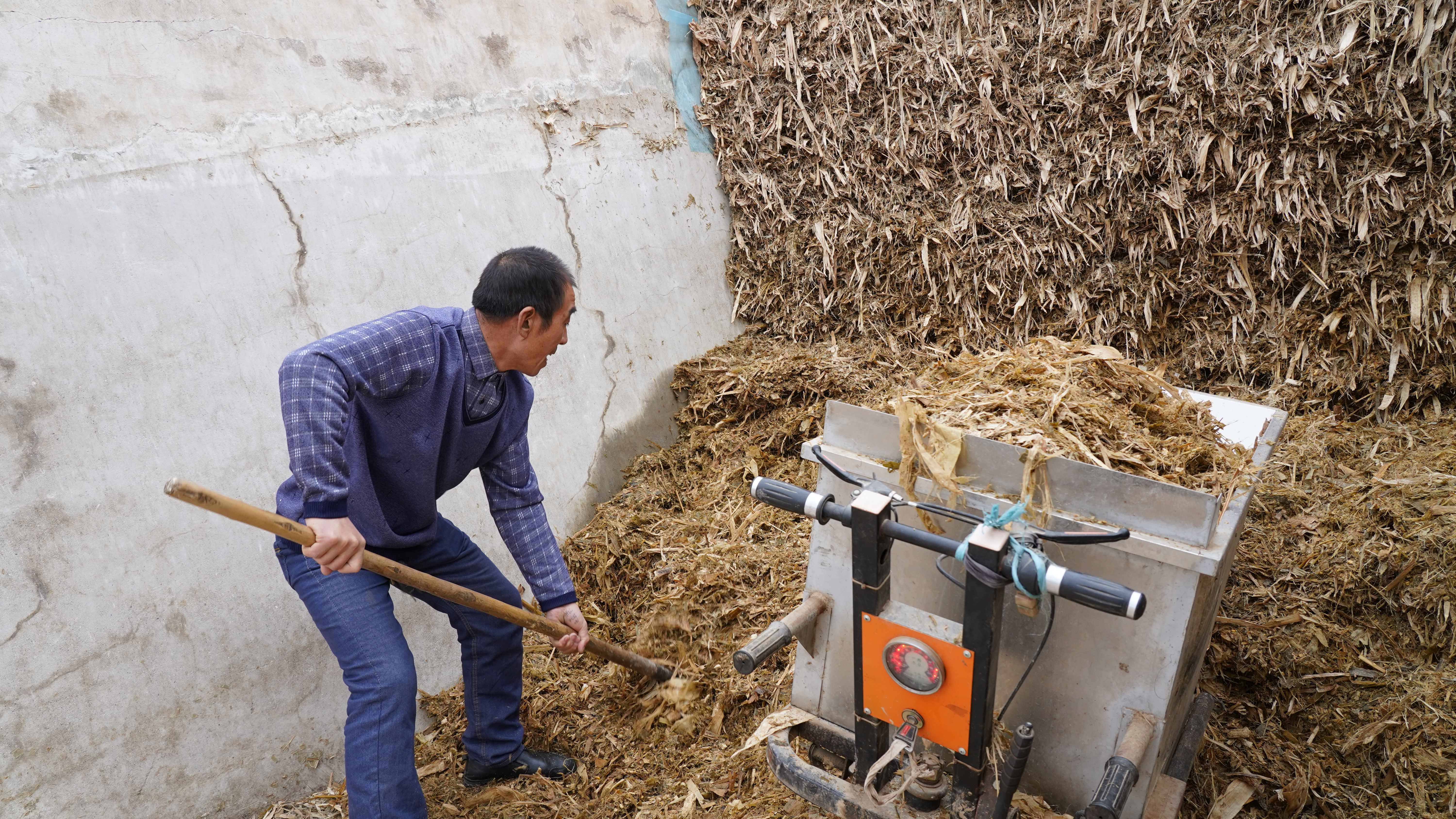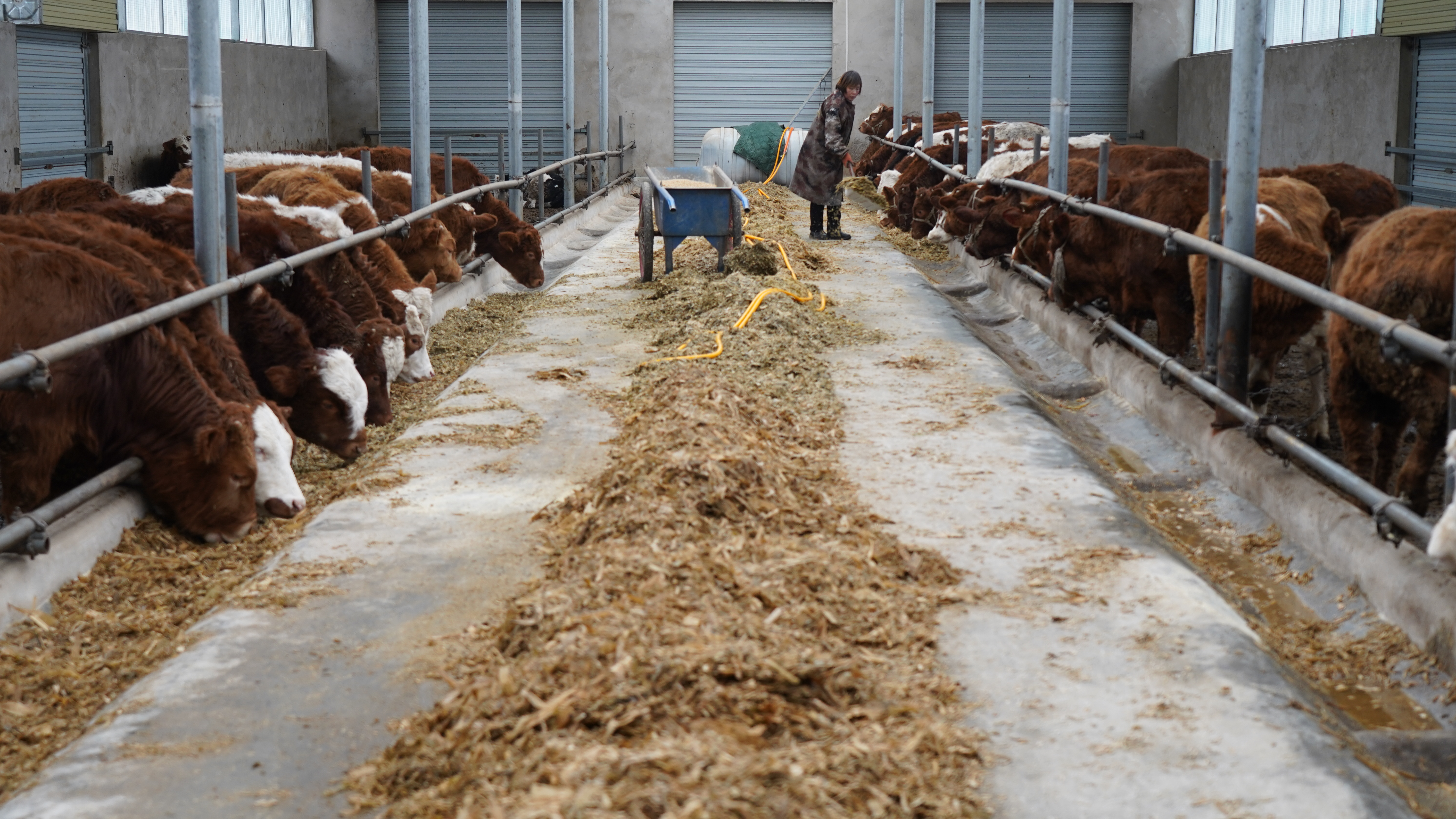 隆冬时节,走进灵芝乡车李村,随处可见的牛棚,为该村产业发展增添了勃勃生机,53岁的养殖户李国国正在打扫牛棚,准备给牛投喂饲料。李国国按部就班地搬运草料、混合饲料、清槽添料,一切都在有条不紊进行。