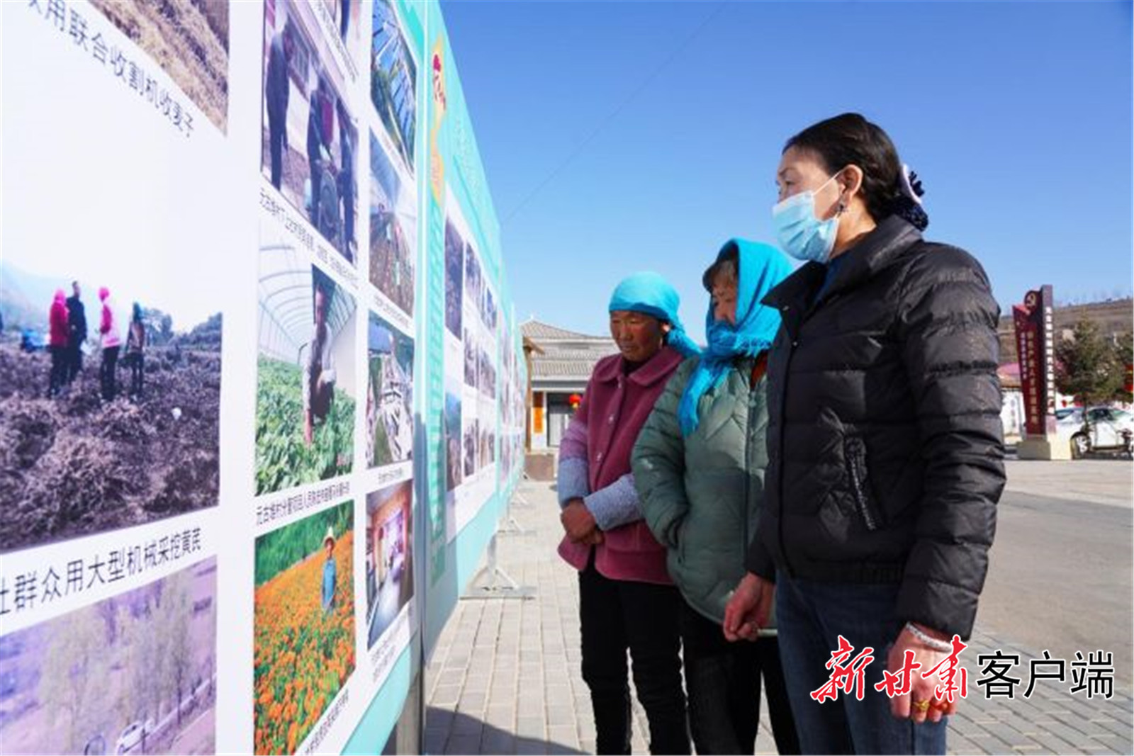 广场上展出的图片吸引了不少村民前来参观。