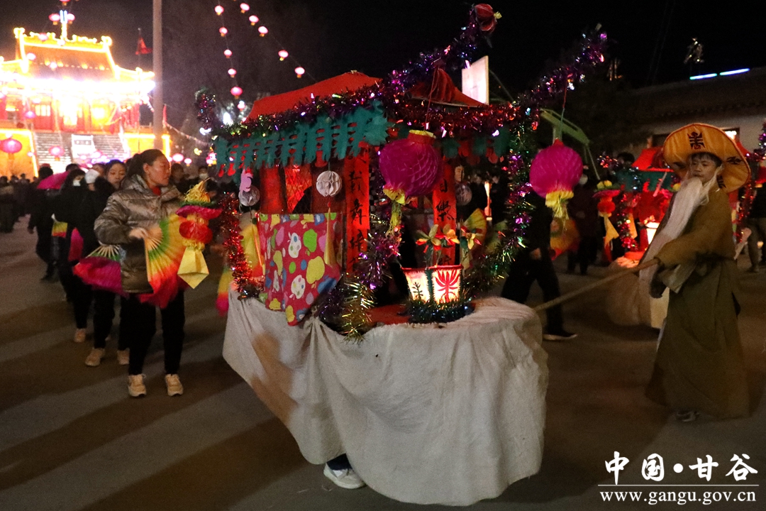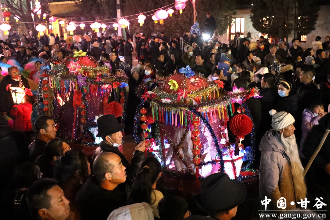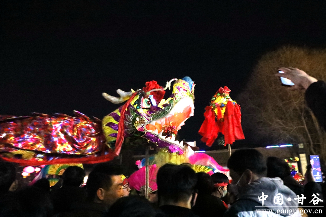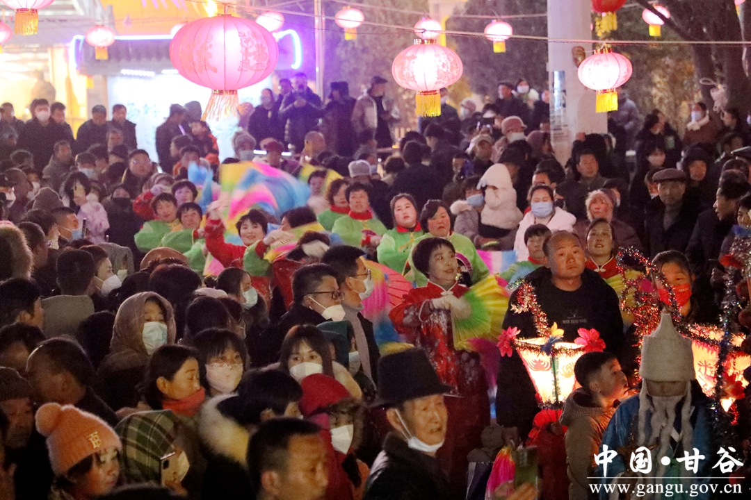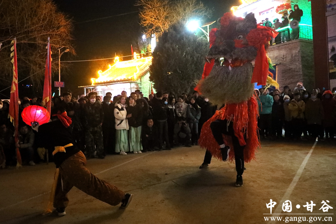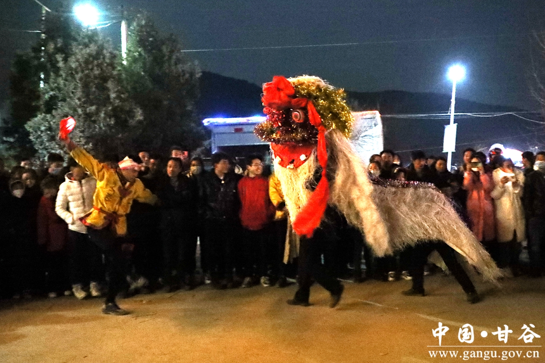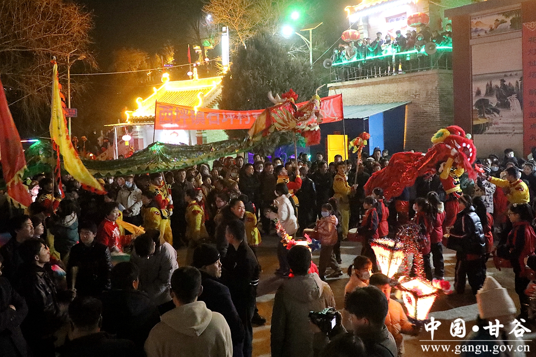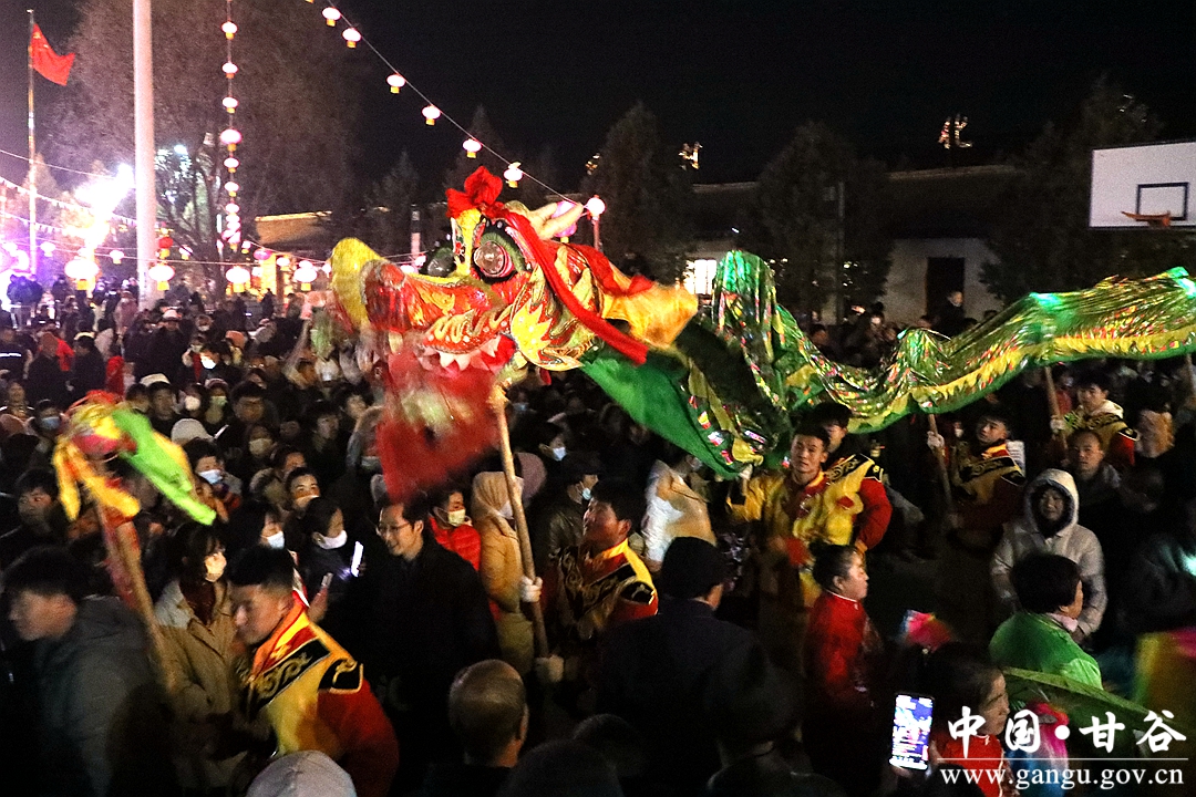 新甘谷讯 【记者 张宾】舞龙舞狮划旱船,敲锣打鼓迎新春。2月5日,农历正月十五丨元宵节,傍晚的西坪镇庙儿口文化广场人潮涌动,摩肩接踵,由周边村庄群众自发组织的2023年度春节秧歌联欢汇演活动在这里精彩上演。