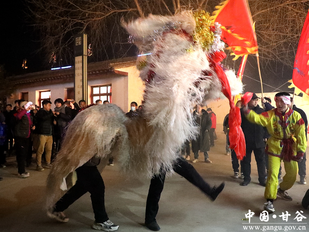 震天的锣鼓敲起来,欢快的秧歌扭起来。随着斑斓的焰火绚丽绽放,秧歌社火表演正式拉开序幕。伴随着欢快的鼓声,男女老少齐上阵,马排子、舞龙、跑旱船、耍狮子、舞蹈等特色表演向广大群众送去新春的问候和祝福,欢乐喜庆的社火活动让观众大饱眼福,体验了一把年味十足的民俗文化盛宴。