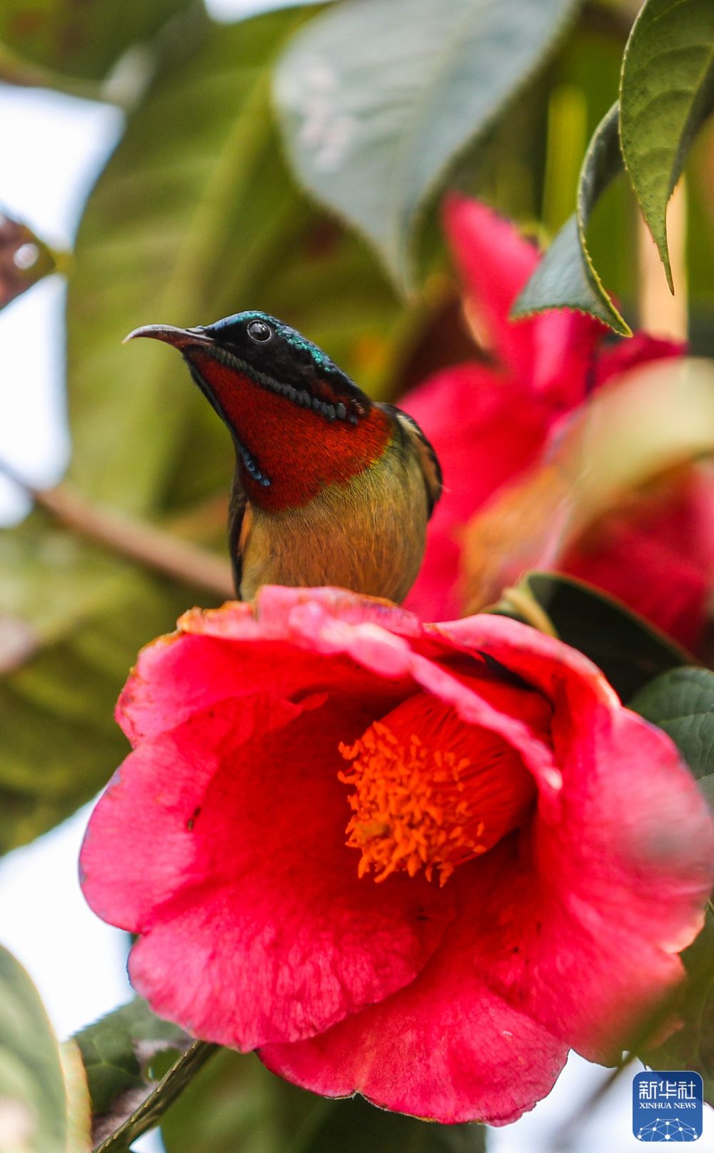 ↑ 2月15日,在贵州省玉屏侗族自治县朱家场镇茅坡村拍摄的叉尾太阳鸟。新华社发(胡攀学摄)
