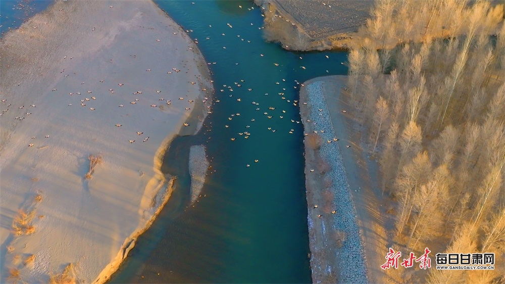 近年来,张掖市临泽县加大河湖湿地环境治理和动物保护力度,生态环境不断改善,越来越多的珍禽水鸟落户临泽黑河湿地。