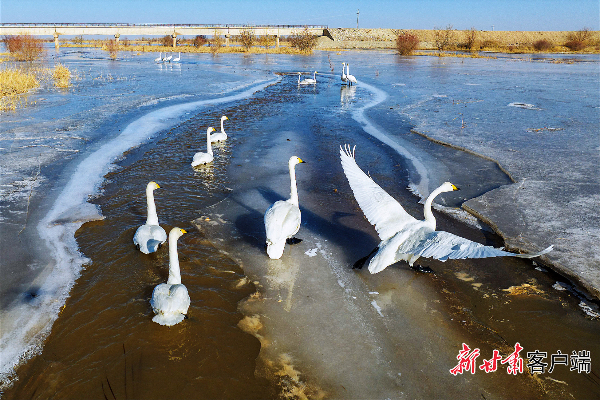 黑河天鹅翩翩起舞。