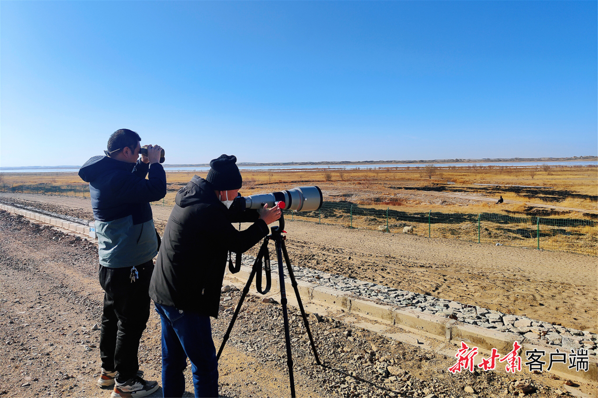 观测湿地候鸟。本文图片摄影:新甘肃·甘肃日报通讯员 王萍