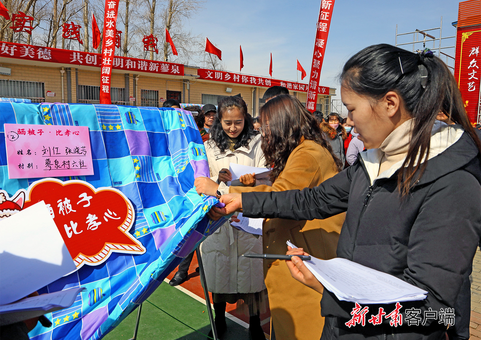 2月20日,临泽县蓼泉镇举行了“孝老爱亲扬美德”晒被子比孝心活动。活动中推荐的30床被子经过评委认真评选,最终6床由媳妇为婆婆洗晒的被子胜出。此活动通过晒被子晒出了新生活,对弘扬中华传统美德、形成敬老爱亲的良好家风有积极的推动作用。