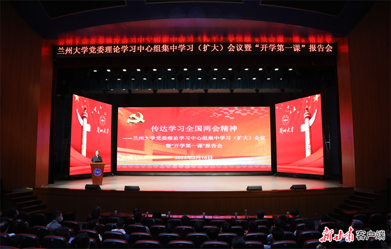 近日,在兰州大学党委理论学习中心组集中学习(扩大)会议暨“开学第一课”报告会上,全国人大代表、中国科学院院士、兰州大学校长严纯华结合参会履职,为师生专题传达学习全国两会精神。他还介绍了甘肃代表团履职情况。