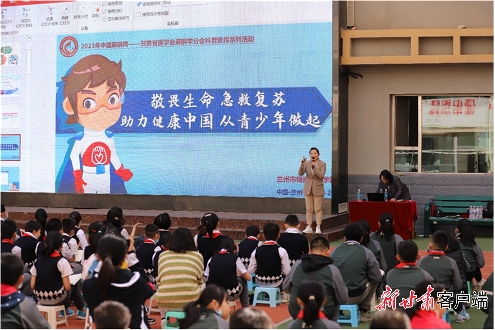 新甘肃客户端讯(新甘肃·每日甘肃网记者 王梓懿)2023年3月27日—4月2日,是第七个“中国麻醉周”。为提高公众对麻醉知识的认识,3月29日下午,甘肃省医学会麻醉学分会主任委员、兰大二院麻醉科主任王迎斌组织省内多家三甲医院麻醉专业医护赴畅家巷小学开展了主题为“敬畏生命,急救复苏,助力健康中国,从青少年做起 ”的大型医学科普宣传活动,畅家巷小学的300余名师生参加活动。