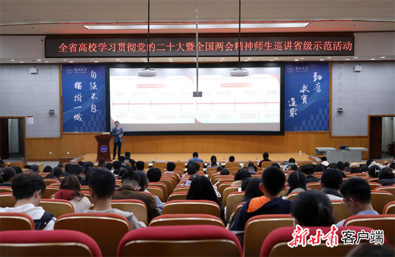 新甘肃客户端兰州讯(新甘肃·甘肃日报记者 苏家英)4月6日下午,全省高校学习贯彻党的二十大暨全国两会精神师生巡讲省级示范活动在兰州大学举办。
