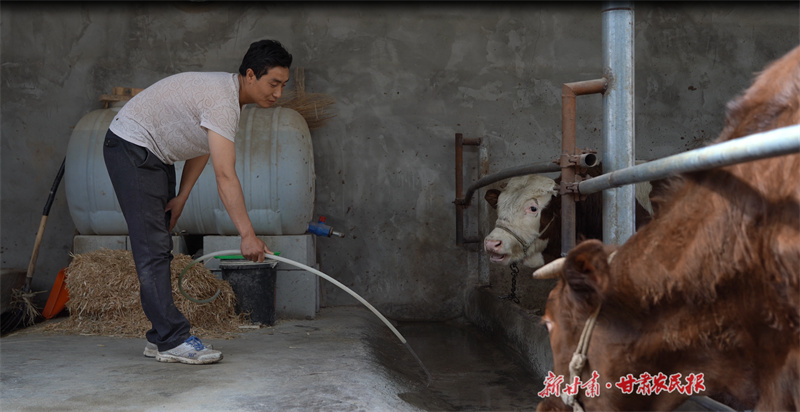 杨顺院给牛喂水。