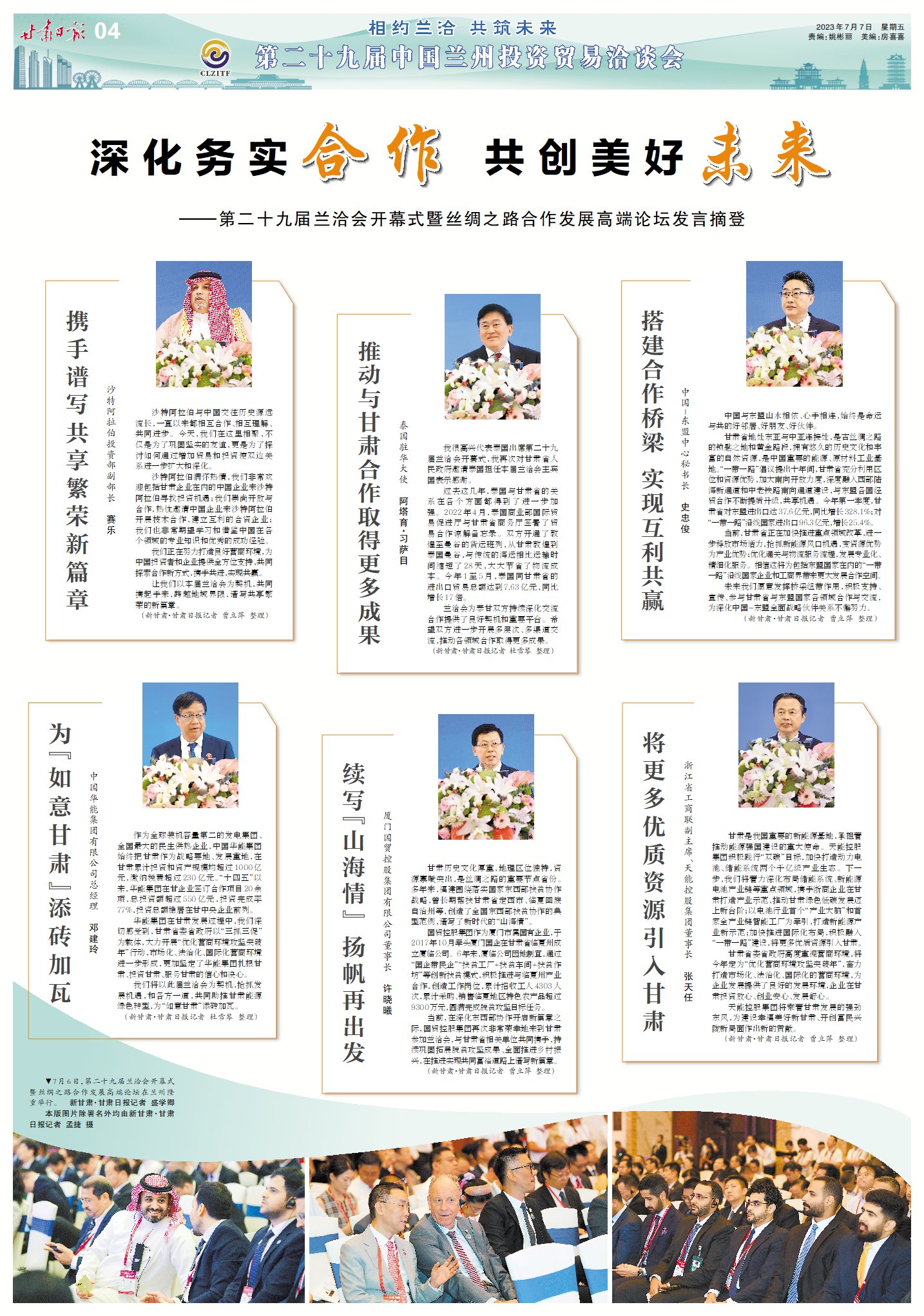 我们将以此届兰洽会为契机,抢抓发展机遇,和各方一道,共同助推甘肃能源绿色转型,为“如意甘肃”添砖加瓦。