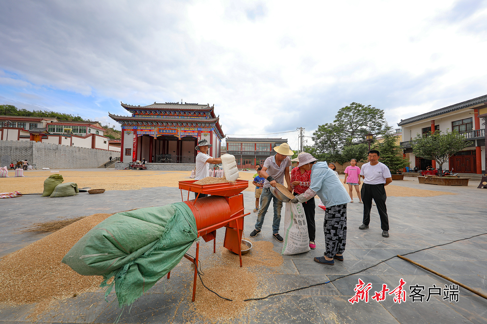 7月10日,在秦安县陇城镇“三道深”流域小麦种植基地里,村民们正忙着收获丰产的小麦。据悉,陇城镇种植冬小麦2.49万亩,80%的小麦目前已完成收割、脱粒、晾晒等工作。