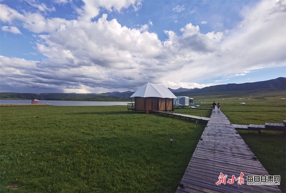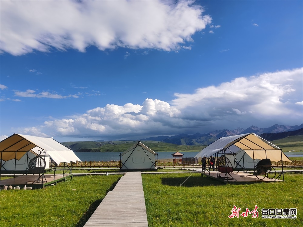 夏日,走进位于青海省海北藏族自治州祁连县默勒镇扎沙村西侧的天境圣湖托茂部落景区自驾车旅游营地,逶迤的群山上白云缭绕,平静的湖面倒映着群山,羊群在不远处的草地上悠闲地吃草,在淡淡野花香的衬托下,让人有一种想在草地上打个滚的冲动。