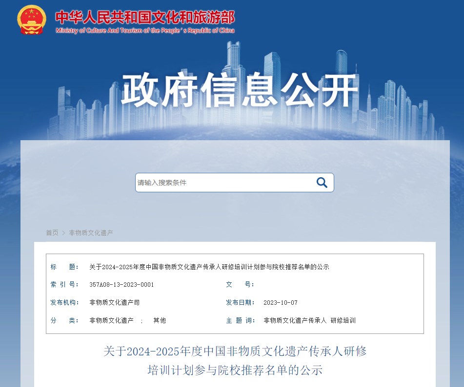 关于2024—2025年度中国非物质文化遗产传承人研修培训计划参与院校推荐名单的公示