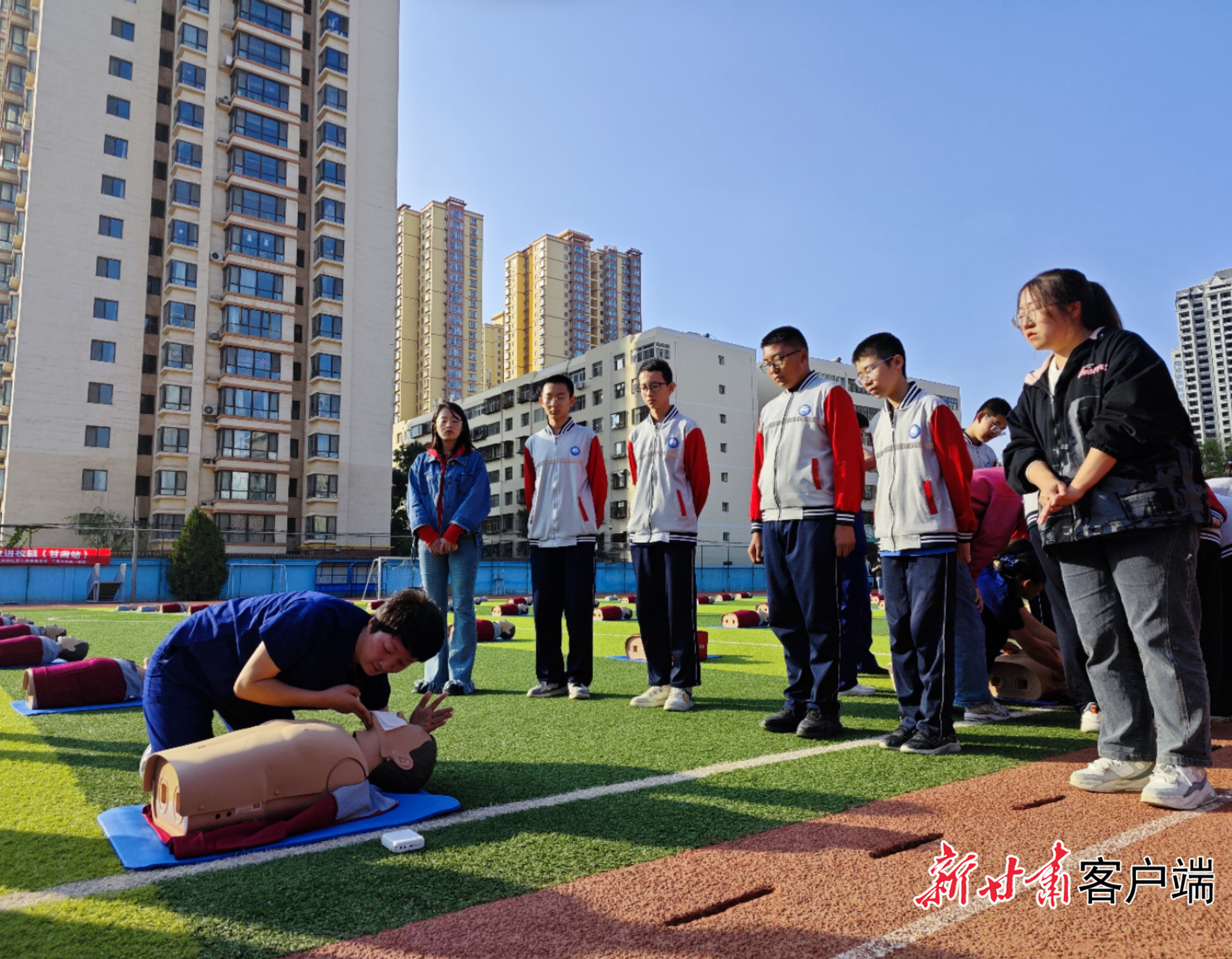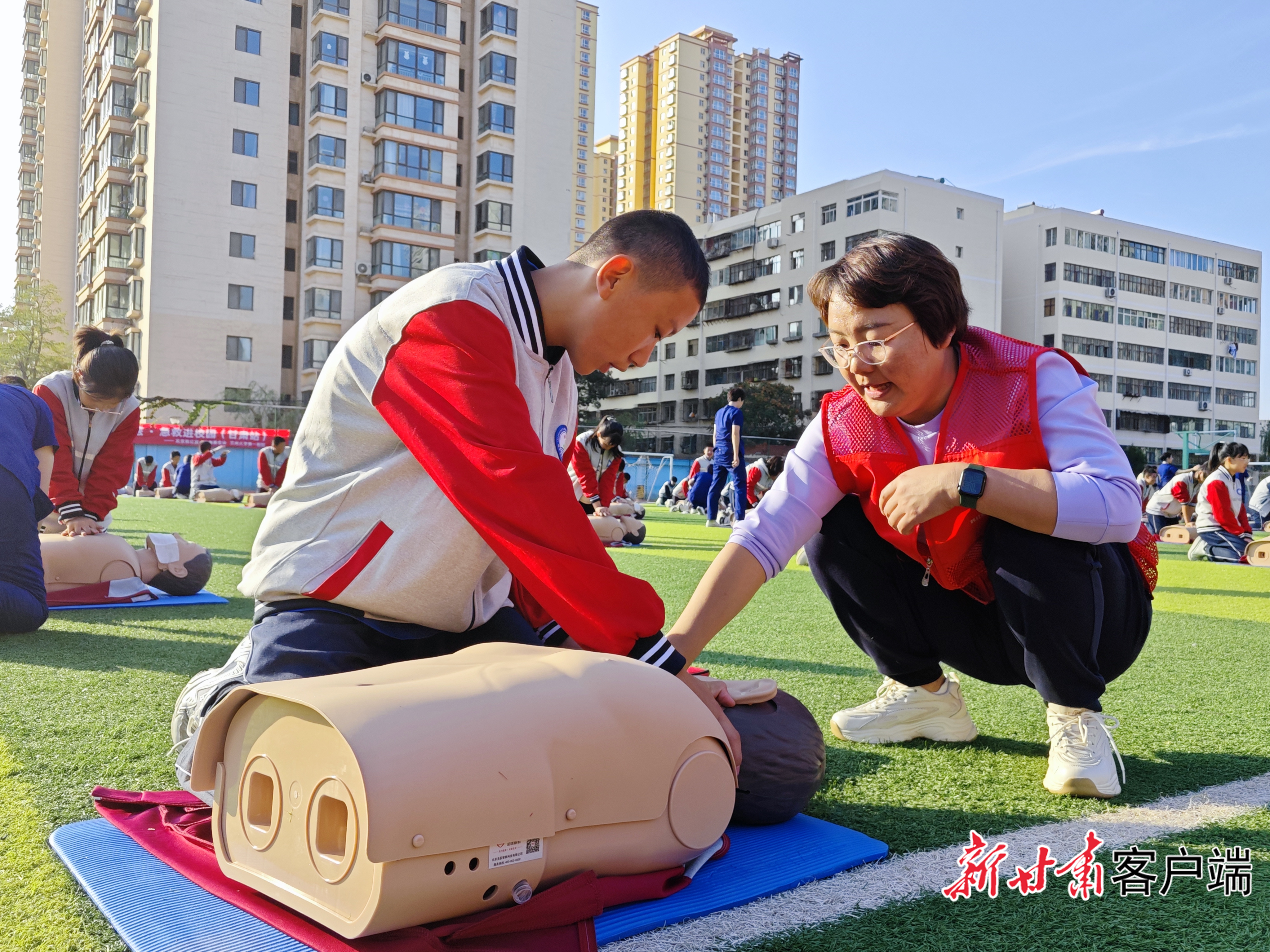 活动现场,兰州大学第一医院急救培训团队通过技能培训,为兰州市第三十四中学师生讲解演示“常见急诊及意外事件如何现场自救”等内容。